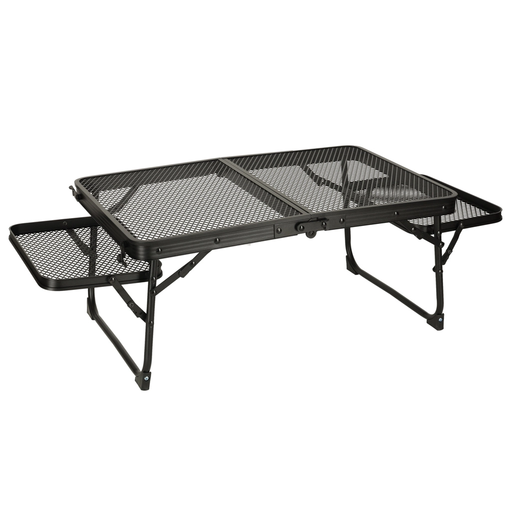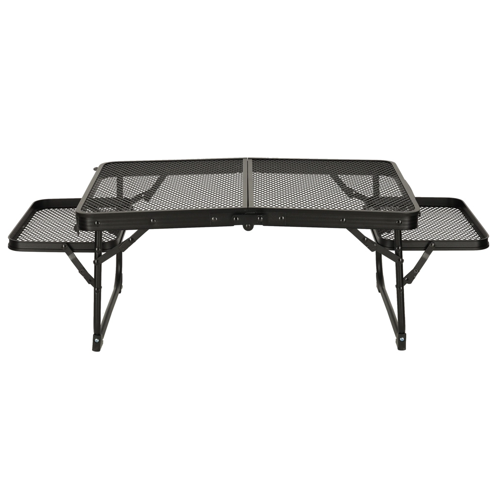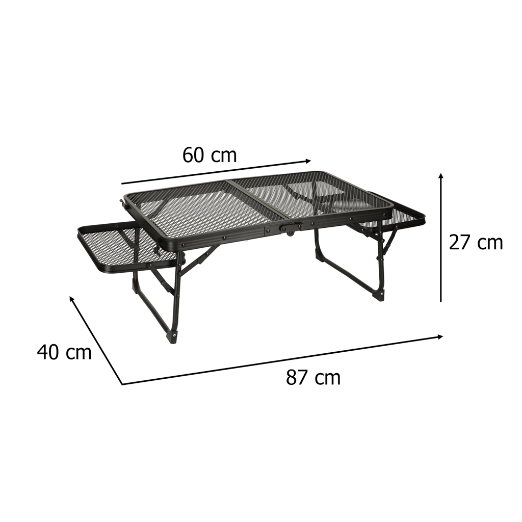 Ta zložljiva kamping miza je idealna za tiste, ki iščejo multifunkcionalne in praktične rešitve za zunanje aktivnosti. Izdelana iz aluminijaste konstrukcije, miza je odporna proti rji in njena kovinska mrežasta plošča nudi odlično ventilacijo in vzdržljivost. Zaradi svoje majhne teže jo lahko enostavno prenašate in shranjujete, kar je popolno za uporabo na kampiranju, pikniku ali na vrtu.
