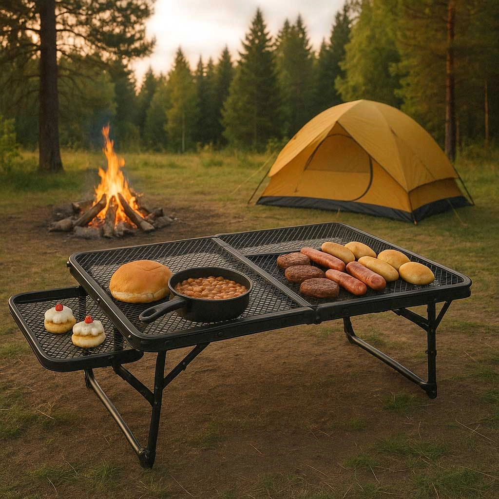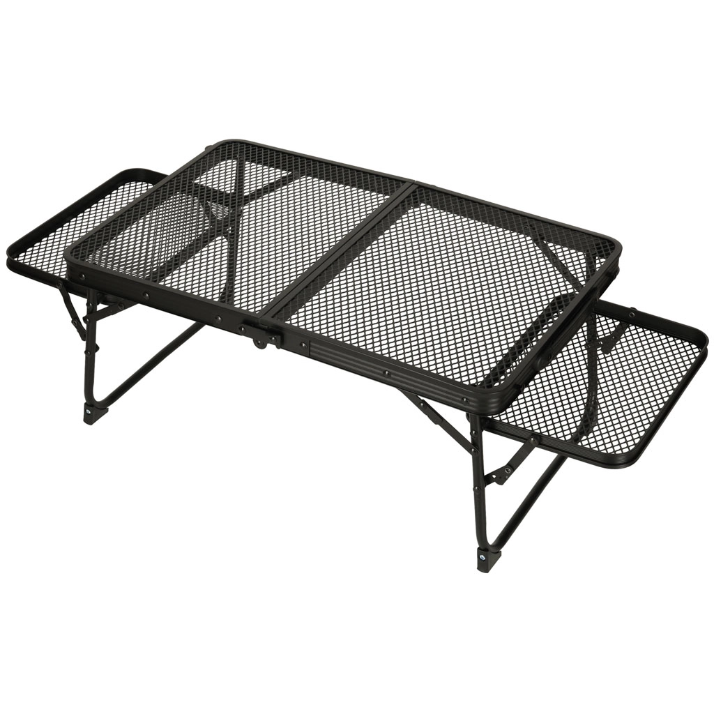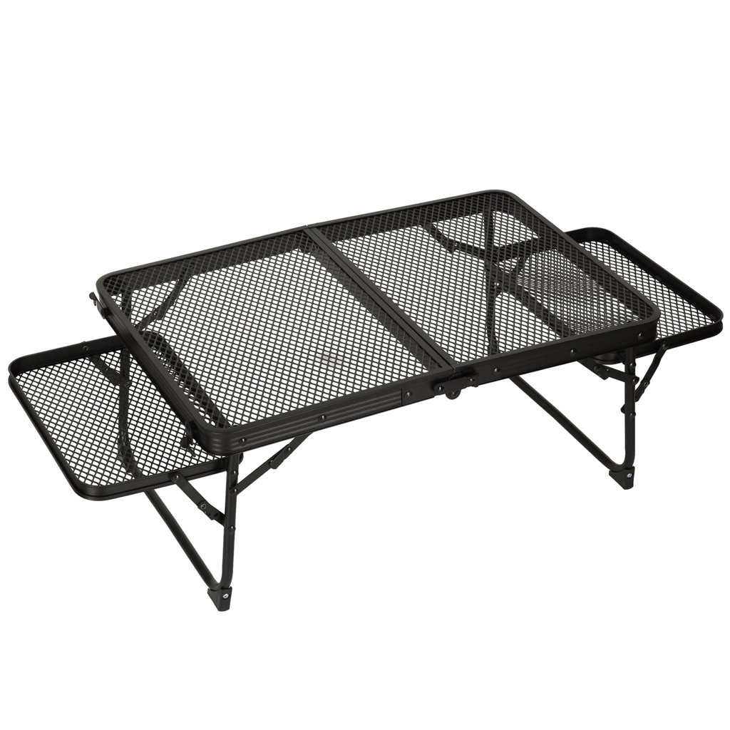 Ta zložljiva kamping miza je idealna za tiste, ki iščejo multifunkcionalne in praktične rešitve za zunanje aktivnosti. Izdelana iz aluminijaste konstrukcije, miza je odporna proti rji in njena kovinska mrežasta plošča nudi odlično ventilacijo in vzdržljivost. Zaradi svoje majhne teže jo lahko enostavno prenašate in shranjujete, kar je popolno za uporabo na kampiranju, pikniku ali na vrtu.