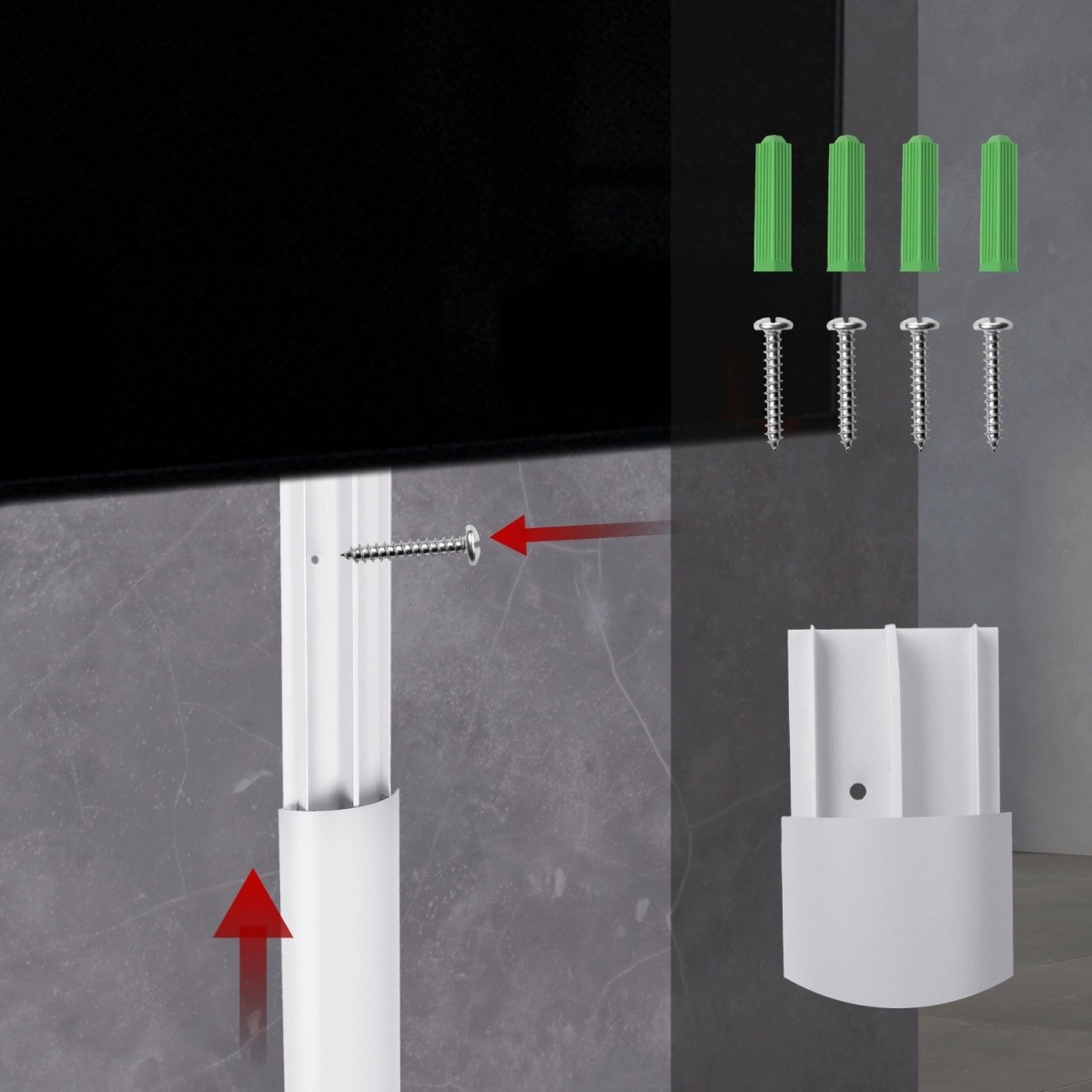 Omogoča namestitev z uporabo samolepilnega traku ali vijakov in vložkov.