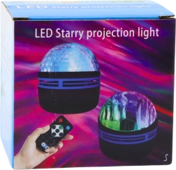 LED projektor zvezd z daljinskim upravljalnikom ponuja barvno LED RGB svetlobo z mnogimi barvnimi kombinacijami in delovnimi načini. Omogoča vklop in izklop, spremembo barv, aktivacijo načina, v katerem projektor reagira na okoliške zvoke, ter uravnavanje hitrosti vrtenja motorja.