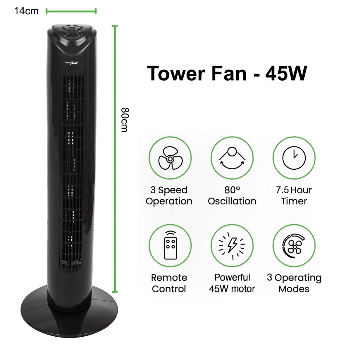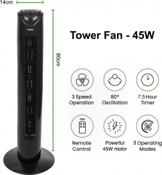 Sodobna in stabilna konstrukcija višine 82 cm omogoča postavitev ventilatorja doma ali v pisarni, ne da bi zavzel preveč prostora. Široka baza zagotavlja stabilnost naprave.