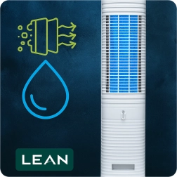 Predstavljamo stolpni ventilator LEAN, zasnovan za največje olajšanje v vročih dneh zahvaljujoč tehnologiji vodnega hlajenja. Dovolj je, da nalijete vodo in dodate led za boljši učinek. Funkcija ionizacije dodatno čisti zrak alergenov in mikroorganizmov.