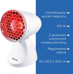 Z infrardečo svetilko Beurer dobite kakovostno napravo, namenjeno za domačo nego in terapijo. Svetilka je opremljena z zaščitno mrežico ter zagotavlja močan svetlobni izhod, kar jo naredi primerno za lajšanje mišične napetosti ali prehlada. Zahvaljujoč možnosti nastavitve kota v 5 različnih položajih svetilka omogoča individualno in fleksibilno uporabo.