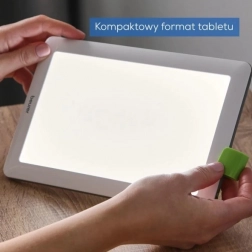 Praktična kompaktna zasnova v velikosti tablice (15,6 × 23,6 cm) naredi to svetilko idealnega spremljevalca za vsak dan – doma, v pisarni ali na poti. Po priklopu zagotovi dodaten odmerek dnevne svetlobe vedno, ko jo potrebujete.