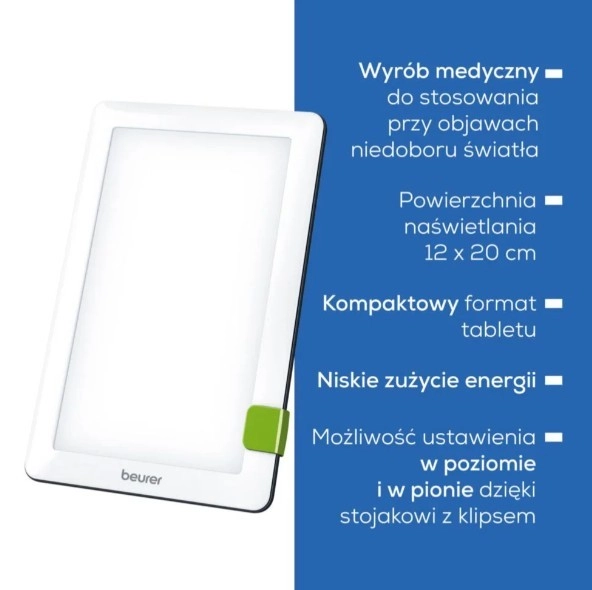 Zlasti v zimskih mesecih mnogi občutijo pomanjkanje ravnovesja ali energije zaradi premalo dnevne svetlobe. Svetlobna terapevtska svetilka Beurer TL 30 učinkovito odpravlja te simptome in izboljša vaše počutje v sivih dneh s simulacijo dnevne svetlobe.