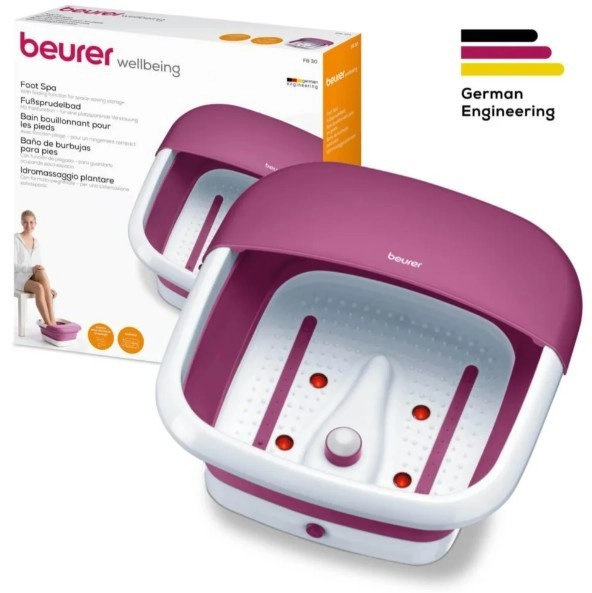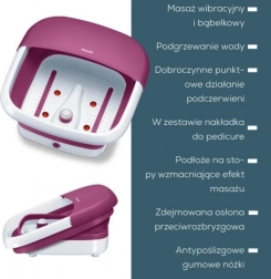 Relaksacijska kad za vodno masažo stopal Beurer združuje funkcije pedikure, vibracijske masaže in vzdrževanja temperature vode, kar prinaša olajšanje in regeneracijo utrujenim stopalom.