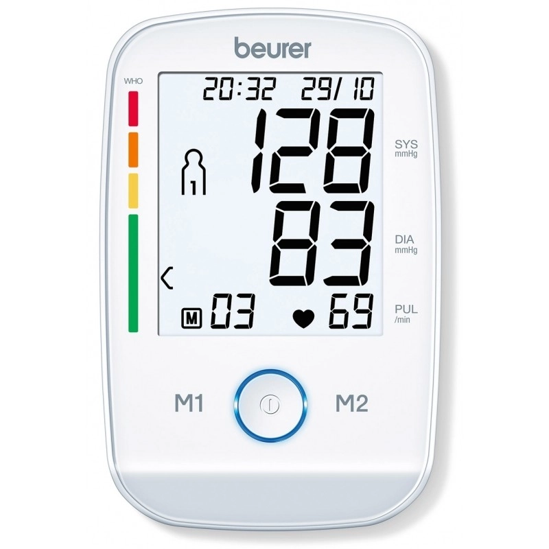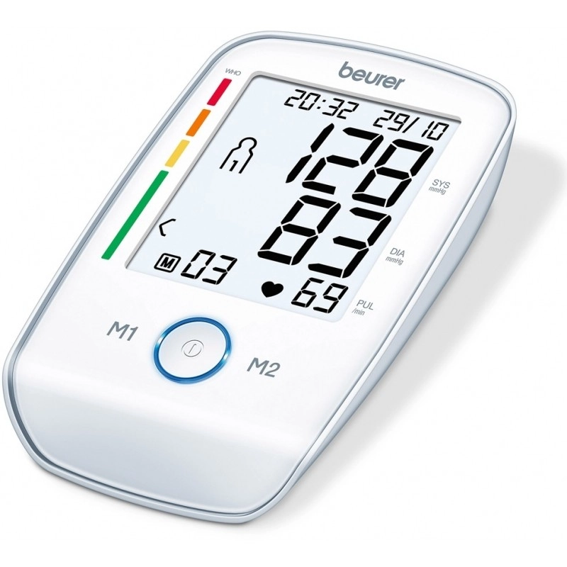 Beurer BM 45 je nadlaktni merilnik krvnega tlaka z zaslonom na dotik in osvetljenim XL-zaslonom za enostavno uporabo. Zahvaljujoč funkciji zaznavanja aritmije naprava opozori na možne motnje srčnega ritma.