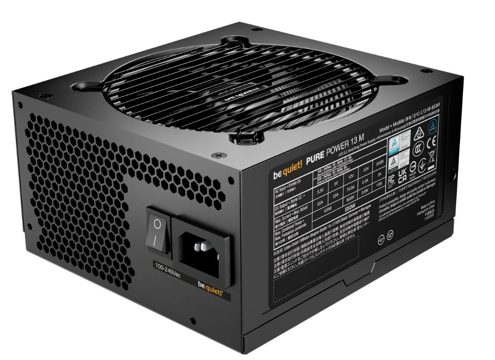 Pure Power 850W zagotavlja vrhunsko učinkovitost 80 PLUS Gold do 94,4%. Vključuje ATX 3.1 s podporo za PCIe 5.1 in grafične kartice s 6+2‑pinskimi priključki, pa tudi izjemno tih 120 mm ventilator be quiet! s polpasivnim delovanjem.