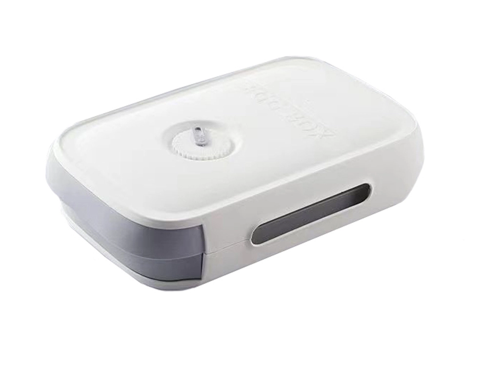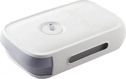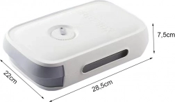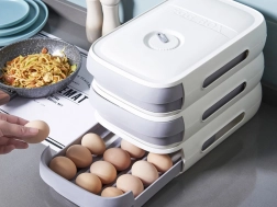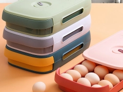 Eleganca in uporabnost se združujeta v tem kompaktnem in modularnem organizatorju za jajca. Zahvaljujoč gladko izvlečnemu predalu je dostop do jajc hiter in udoben. Zložljiv ploščat pokrov omogoča prihranek prostora, praktično stransko okence pa nadzor nad številom jajc.