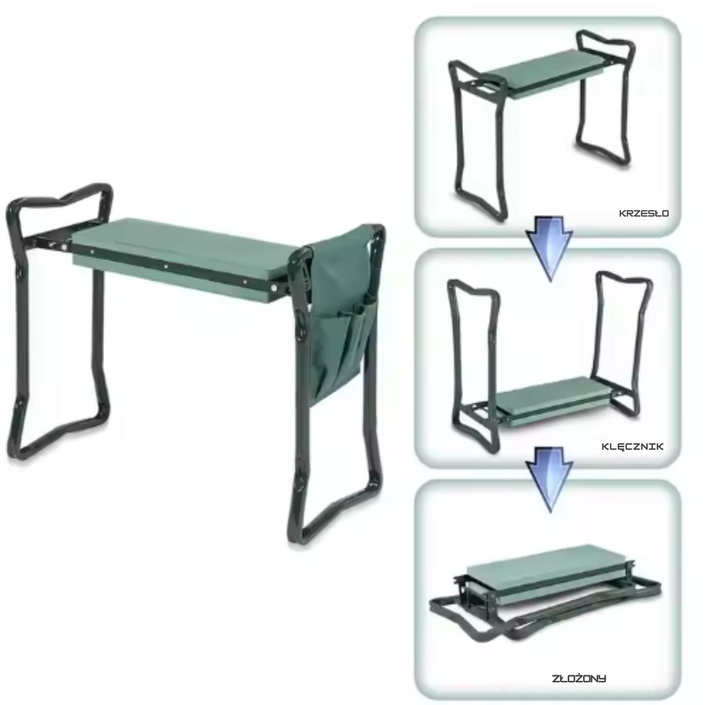 Zahvaljujoč funkciji 3v1 lahko klečalnik uporabljate kot stol za sajenje, klečalnik za pletje ali stol za počitek. Mehka penasta podloga iz EVA je idealna za udobje vaših kolen. Zložljiva konstrukcija omogoča enostaven transport in shranjevanje.