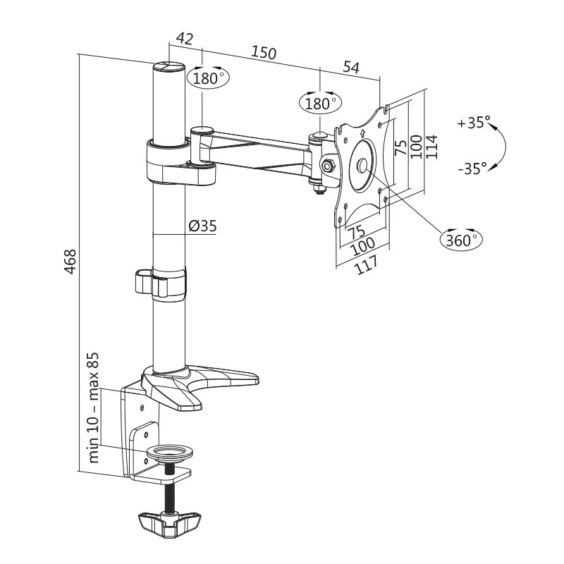 Omogočite si ergonomsko postavitev monitorja z našim nosilcem za monitor. Pritrdite ga neposredno na svojo namizno ploščo in uživajte v maksimalni svobodi gibanja z možnostjo nagiba, vrtenja in rotacije po lastnih željah.