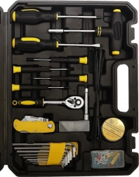 Set vsebuje različne izvijače, raglje, ključe in druga pomembna orodja, potrebna za domače in delavske naloge. Idealen je za domače mojstre in zagotavlja, da boste vedno imeli pravo orodje pri roki.