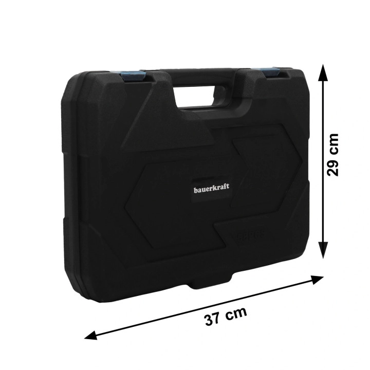 Uživajte v zanesljivosti in udobju s tem vsestranskim setom orodja BauerKraft, idealnim za domače mojstre in profesionalce. Vsebuje vse potrebno za popravila in montaže – od pohištva do manjših elektroinštalacij. Oblika z natančno oblikovanimi predelki ohranja vse orodje na svojem mestu in olajša organizacijo.