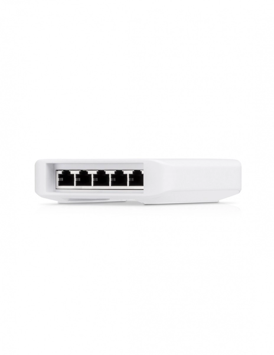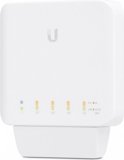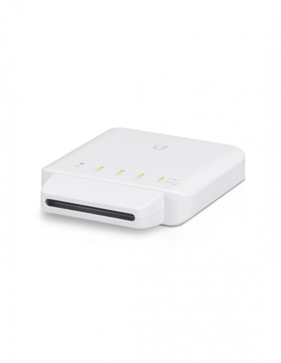Ubiquiti UniFi Switch Flex je gigabitno upravljalno stikalo druge plasti z avtomatskim prepoznavanjem PoE 802.3af, ki ponuja 5 gigabitnih 10/100/1000 Mb/s vrat, vključno s 4 PoE vrati in 1 PoE++ vrati.