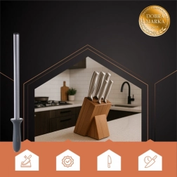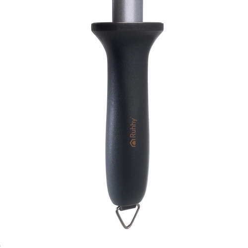 Diamantna brusilna jeklenka RUHHY je neprecenljiv pomočnik za redno ostrenje nožev, ki bo vaše pripomočke ohranjal v popolni kondiciji. Ergonomski ročaj in jeklena palica zagotavljata udobno in vzdržljivo uporabo, kar jo naredi idealno za profesionalne in domače kuhinje.