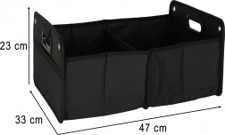 dolžina: 47 cm, dolžina sten: 44 cm, širina stranic: 33 cm, širina sten: 30 cm, višina stranic: 23 cm, višina sten: 17 cm, višina pregrade: 14 cm, debelina po zlaganju: 3,5 cm