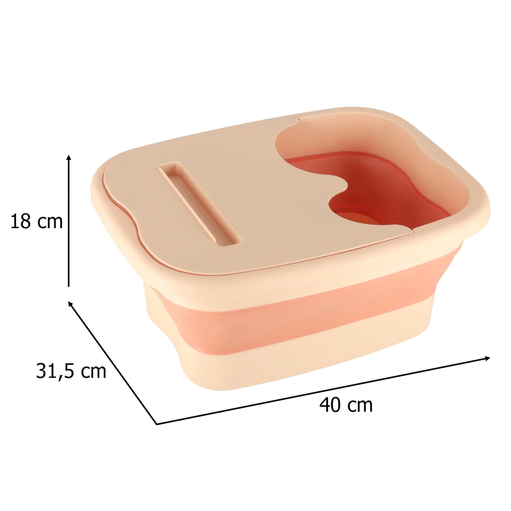 Ta masažna kadica za noge je odlična rešitev za tiste, ki iščejo udoben način sprostitve po dolgem dnevu. Narejena je iz kakovostne plastike v elegantnih bež in lososovih tonih, ponuja ne le odličen videz, ampak tudi praktično funkcionalnost.