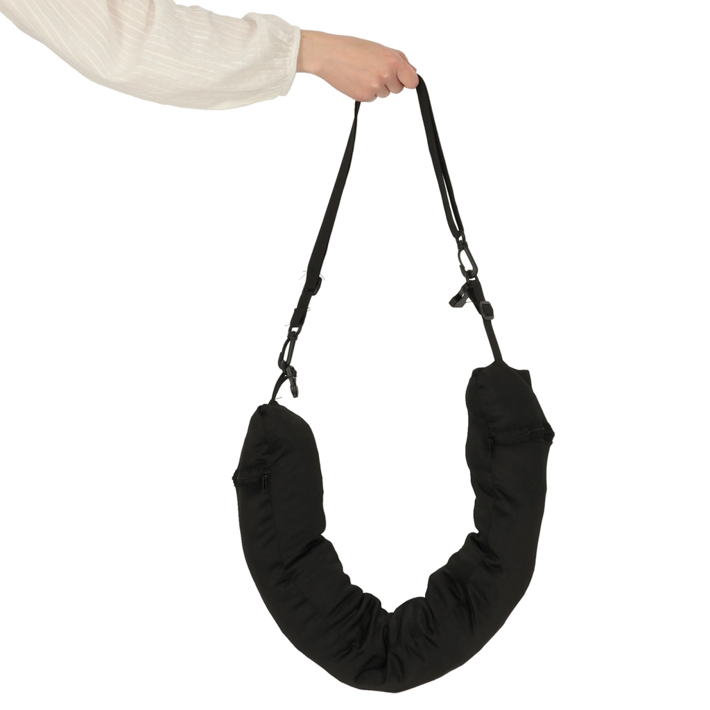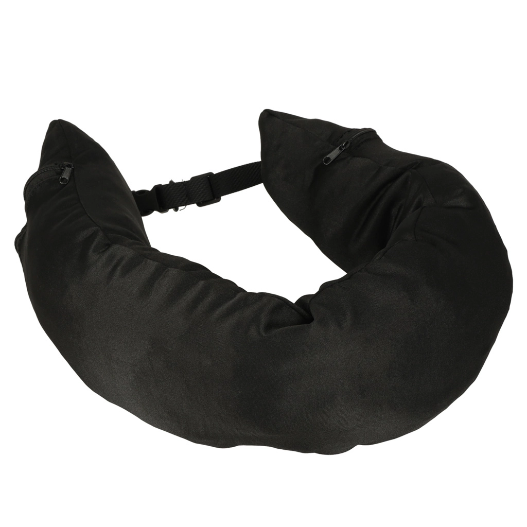 Ta potovalna blazina je idealni sopotnik na poti. Opremljena je z sprednjim zapenjanjem v obliki sponke, kar zagotavlja stabilnost in udobje med uporabo. Notranji velik žep zagotavlja praktično shranjevanje za vaše osebne stvari. Dve stranski zadrgi omogočata enostaven dostop z obeh strani, pri čemer se levi in desni žepi združujejo znotraj.