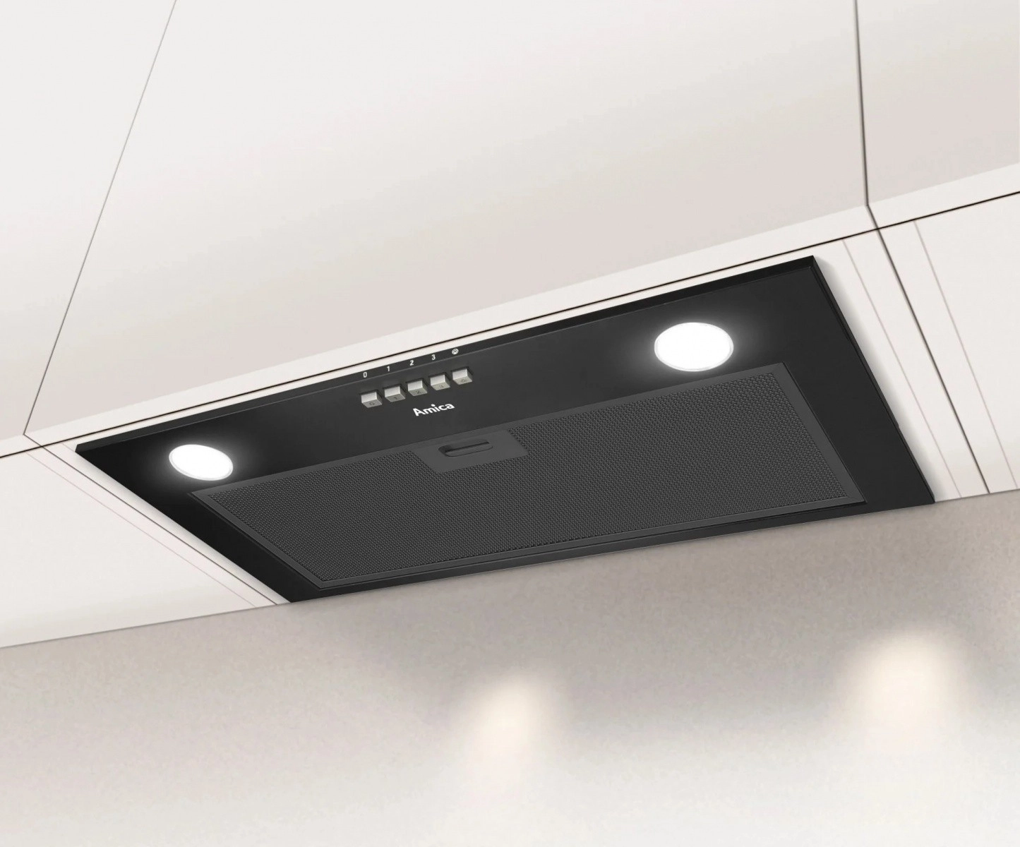 Elegantna črna kuhinjska napa zagotavlja učinkovito odvajanje pare iz vaše kuhinje. Sodoben dizajn in visoka zmogljivost sta idealna za vsakodnevno uporabo.