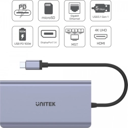 Če vaš prenosnik podpira DisplayPort Alt Mode ali Thunderbolt 3, boste dosegli najvišjo kakovost slike in zvoka s kristalno ostrino ter podporo za Dolby Digital Audio 7.1. Tehnologija Power Delivery 100W omogoča učinkovito polnjenje, kompaktne mere pa poskrbijo, da se zlahka prilega vsaki torbi. Garancija za izdelke Unitek krije poškodbe prek partnerskih servisnih storitev.