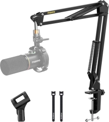 Nosilec za mikrofon Maono je izdelan iz visokokakovostnega jekla, kar omogoča varno pritrjevanje mikrofonov do teže 1 kg. Dve ročici dolžine 33 cm omogočata enostavno in natančno nastavitev položaja.