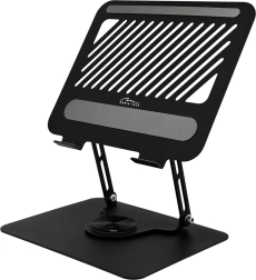 Trajnost in stabilnost v vsaki situaciji Stojalo je izdelano iz ogljikovega jekla in aluminija, kar zagotavlja odpornost tudi pri intenzivni uporabi. Silikonske blazinice ščitijo prenosnik pred praskami, protizdrsne nogice pa zagotavljajo stabilnost na površini.