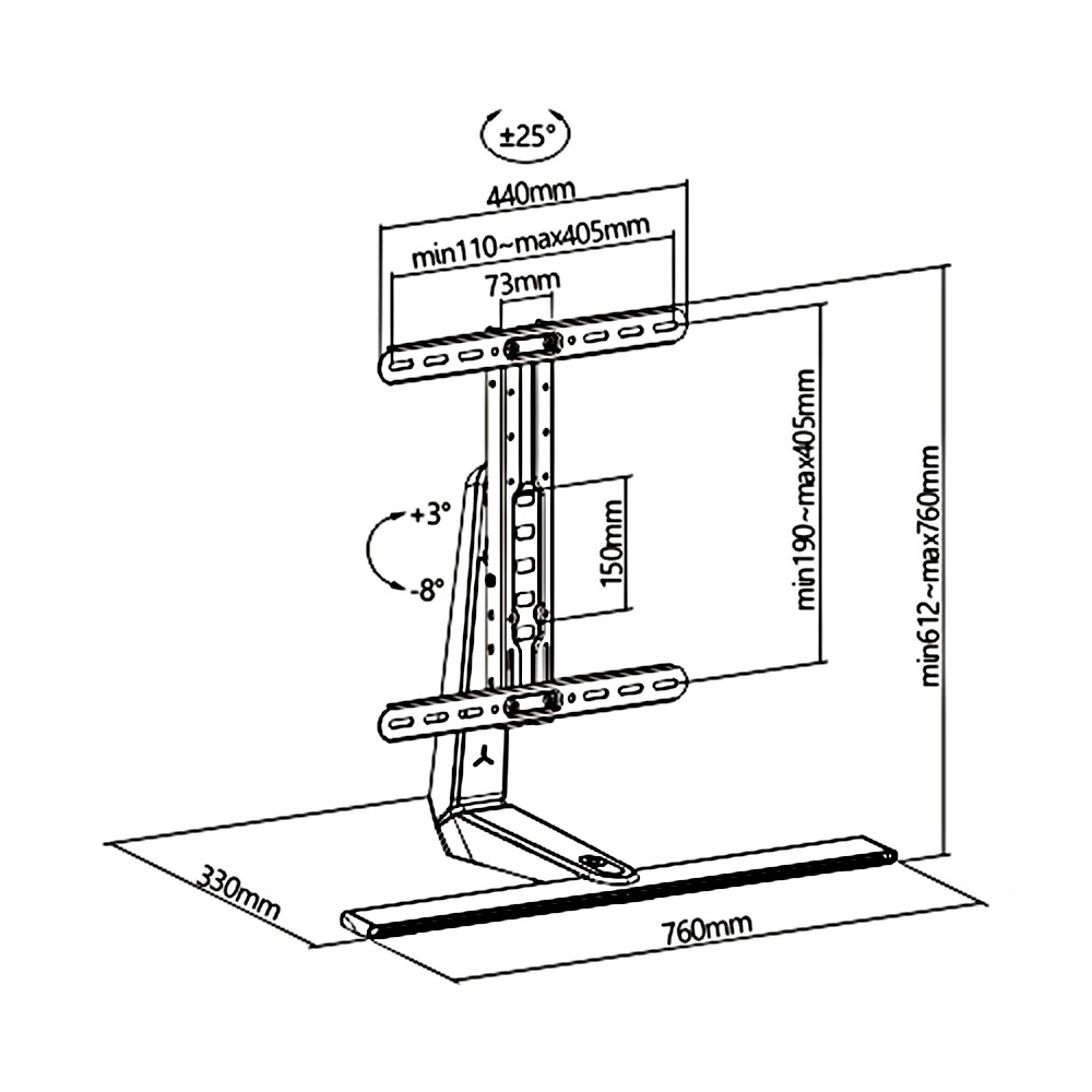 Združljivost: Stojalo je primerno za monitorje znamk Sony, LG, Samsung, Philips, Sharp, Panasonic, Toshiba in druge. Ponuja enostavno montažo za monitorje s standardom VESA: 200x200, 300x200, 300x300, 400x200, 400x300, 400x400.