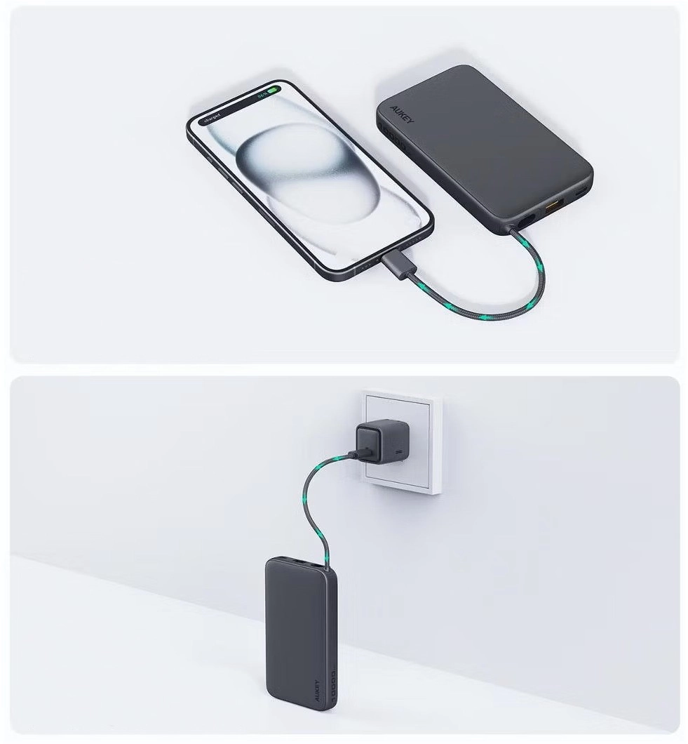 Powerbanka Aukey Spark Sling ponuja kapaciteto 10000 mAh in hitro polnjenje do 22,5 W z možnostjo hkratnega polnjenja do treh naprav.