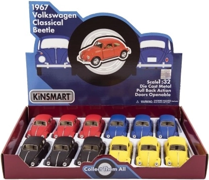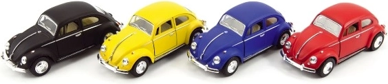 Slogoven in verodostojen model legendarnega vozila VOLKSWAGEN Beetle znamke KINSMART bo razveselil otroke in zbiratelje. Zaradi kovinskega ohišja in mehanizma na poteg nazaj se avtomobilček po spustu živahno zapelje. Kompaktna dolžina 13 cm, 4 barvne različice in kakovostna izdelava iz kovine in plastike. Primerno od 3 let.