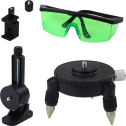 Priloženih je veliko montažnih dodatkov, nosilcev, 2x akumulator, daljinski upravljalnik, dvižna platforma in trden transportni kovček z zaščitno peno. Idealno za delo s keramiko, montažo pohištva, določanje ravni stopnic, stropnih konstrukcij in stenskih dekoracij.