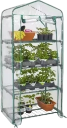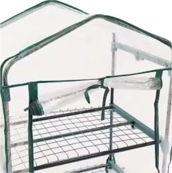 Rastlinjak je opremljen s štirimi policami: dvema po celotni širini in dvema polovičnima, kar omogoča prosto organizacijo prostora glede na višino rastlin. Praktična vrata z zadrgo omogočajo hiter in udoben dostop v notranjost.