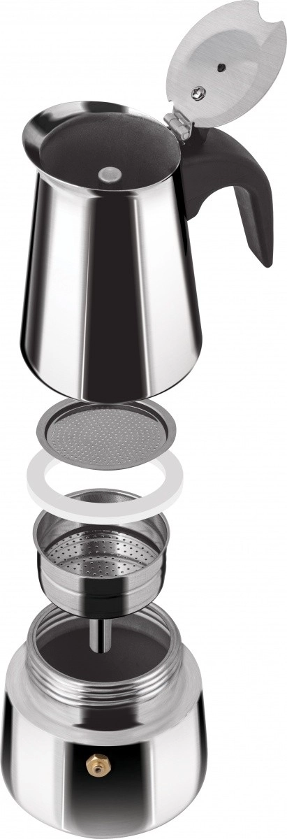 Ta kavnik je tlačni izdelek, ki omogoča pripravo espressa za 6 skodelic. Primeren je za uporabo na vseh vrstah kuhalnih plošč: