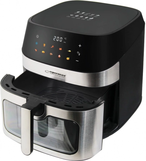 Veliko okno omogoča enostaven nadzor nad potekom priprave jedi. Nastavitev temperature in časovnik omogočata različne čase pečenja. Gumijaste protizdrsne nogice zagotavljajo stabilnost pri delu, sodoben dizajn pa se odlično poda v vsako kuhinjo.