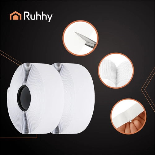 Samolepilni ježek RUHHY je sestavljen iz dveh delov: kljukice in zanke, ki omogočata trdno in večkratno spajanje. Samolepilna plast olajša hitro montažo na različne površine, kot sta plastika ali steklo.