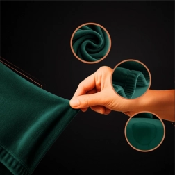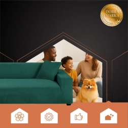 Prevleka je izdelana iz mehke in elegantne velur tkanine, ki je zelo elastična in raztegljiva. Všite elastike zagotavljajo stabilno pritrditev na zofo.