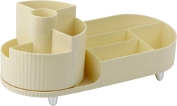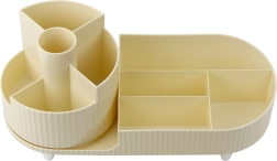 Vrtljiv organizator je opremljen z mehanizmom, ki se vrti za 360°, kar zagotavlja hiter in enostaven dostop do vsebine. Idealen je kot posoda za čopiče za ličenje, šminke, korektorje, stekleničke parfumov, pa tudi kot organizator za svinčnike, škarje, flomastre, markerje, sponke in druge drobne pisarniške pripomočke.