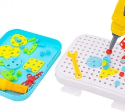 Najboljše darilo za male mojstre je praktičen set s funkcionalnim vrtalnikom, ki spodbuja razvoj ročnih spretnosti in koordinacije. Mozaična sestavljanka je zapakirana v praktičnem kovčku, ki olajša prenašanje in organizacijo delov. Ta set je idealen za doma, vrtec ali na poti k starim staršem.