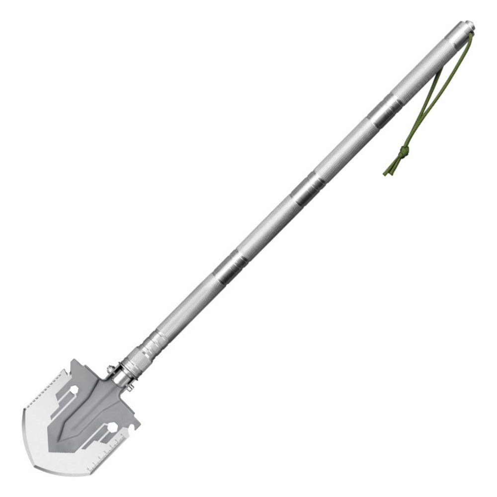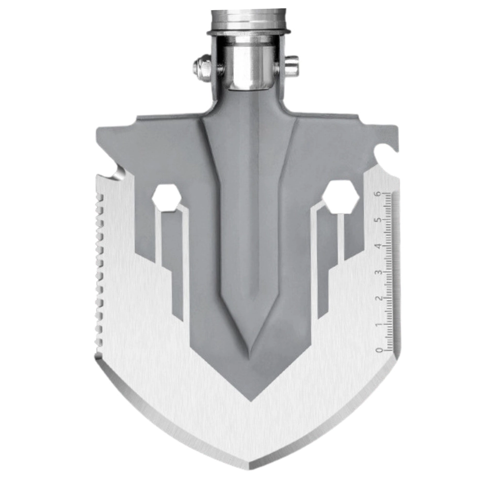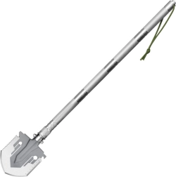 Zložljiva vojaška lopata je izdelana iz visokokakovostnega jekla, njena modularna ročica iz odporne aluminijeve zlitine pa omogoča udoben oprijem in lahko služi tudi kot palica za samoobrambo. Lopata je sestavljena iz treh segmentov po približno 17 cm, tako da zložena zavzame zelo malo prostora - le 25 cm v dolžino. Raztegnjena doseže dolžino do 68 cm, kar zagotavlja udobno in ergonomsko delo.
