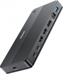 Hitro povezovanje zagotavljata dva USB-C vhoda za polnjenje (do 100W PD) in prenos podatkov, trije USB-A vhodni (2x 5Gbps in 1x 10Gbps), in gigabitni Ethernet za nemoteno delo z internetom.