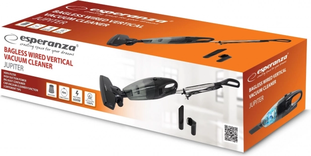 Pokončni sesalnik Esperanza Jupiter ponuja močno sesalno moč in udobje za vsakodnevno čiščenje z zamenljivim HEPA filtrom.