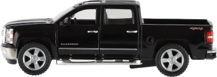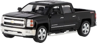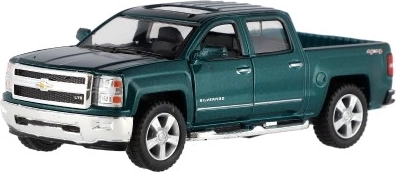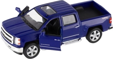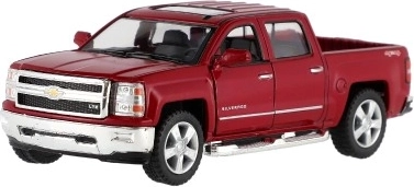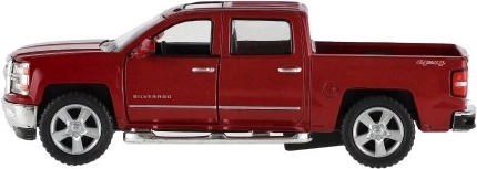 Uživajte v podrobni repliki ikoničnega pick-upa CHEVROLET Silverado 2014. Kovinska karoserija s plastičnimi dodatki, natančen lak in verodostojni proporci bodo navdušili male voznike in zbiratelje. Avtomobilček ima odpirajoča se vrata, zato si lahko ogledate dodelan interier.