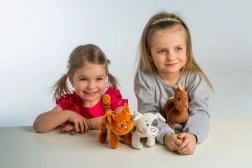 Ob pritisku na trebušček živalica odda avtentičen zvok – otroci zlahka spoznajo, kako mijavka mačka, laja pes ali rezgeta konj.