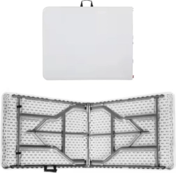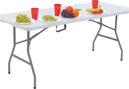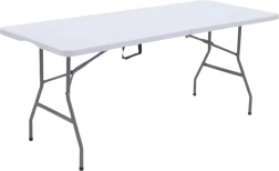 Ta zložljiva miza z merami 180 x 74 cm je nepogrešljiva za vsak dogodek. Njena stabilna jeklena konstrukcija zagotavlja dolgo življenjsko dobo in varno uporabo. Mizna plošča iz odpornega HDPE je enostavna za vzdrževanje in odporna na vremenske vplive, zato je primerna za notranjo in zunanjo uporabo.