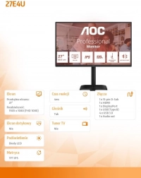 Monitor AOC 27 palcev Full HD IPS je zasnovan za udobno uporabo s funkcijami za zaščito oči, kot sta zmanjšanje modre svetlobe in tehnologija Flicker-Free. Z ergonomskim dizajnom lahko prilagodite položaj zaslona svojim potrebam. Višinsko nastavljivo stojalo, možnost nagiba, vrtenja in pivot ponujajo maksimalno prilagodljivost.