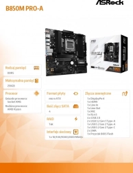 Matična plošča B850M PRO-A je idealna izbira za vse, ki iščejo zanesljivo zmogljivost in uporabniku prijazne funkcije. Izdelek je zasnovan tako, da zagotavlja stabilno in učinkovito delovanje računalnika.