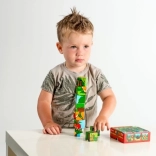 Ta set lesenih kock omogoča ustvarjanje šestih različnih slik živali, kar otrokom prinaša zabavne priložnosti za odkrivanje in učenje. Pri sestavljanju in podiranju kock se otroci učijo o ravnotežju in vzroku in posledici.
