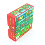 - Kocke so pakirane v leseni škatli dimenzij 11 x 11 x 6 cm.