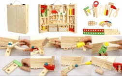 Odkrijte kreativni svet s to leseno zbirko orodja. Idealno za otroke, ki radi raziskujejo in ustvarjajo.