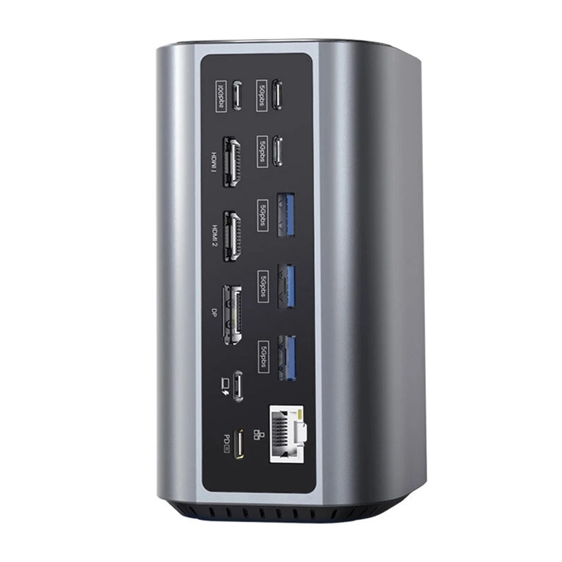 Doživite maksimalno udobje in učinkovitost z dokovalno postajo Blitzwolf BW-TH15, opremljeno s 17 različnimi vmesniki. To vsestransko orodje omogoča hkratno povezavo in upravljanje več naprav, kot so monitorji, podatkovna hrambe ali avdio dodatki.