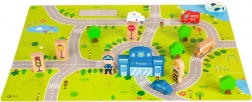 Z različnimi zgradbami in figurami se otroci lahko naučijo o poklicih in mestni infrastrukturi.